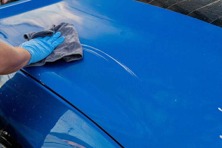 WASHで洗車後、固く絞ったクロスやスポンジに適量吹きかけ、汚れている場所へ優しく塗り伸ばしてください。